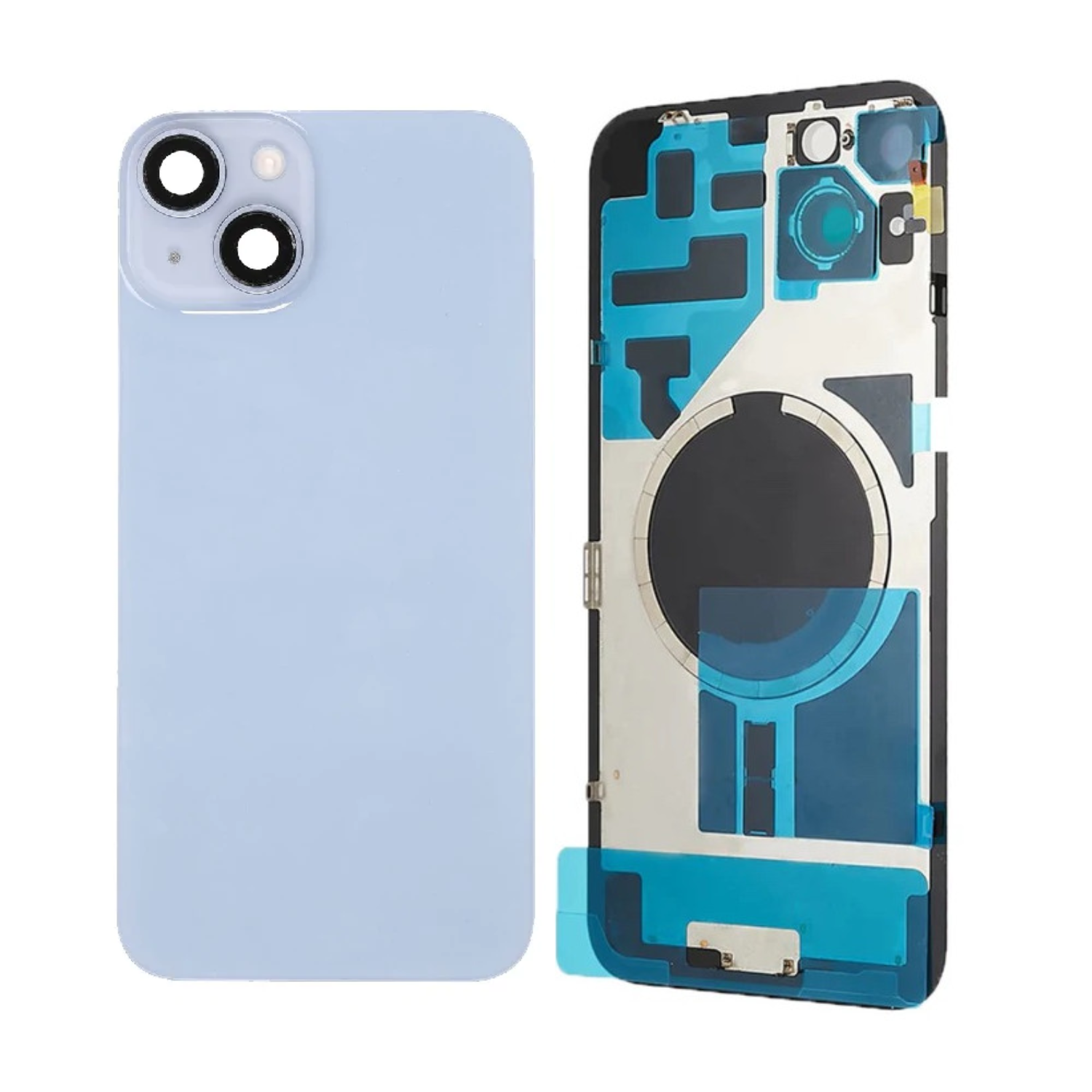Vitre Arrière iPhone 14 Plus Bleu Assemblée avec Logo.