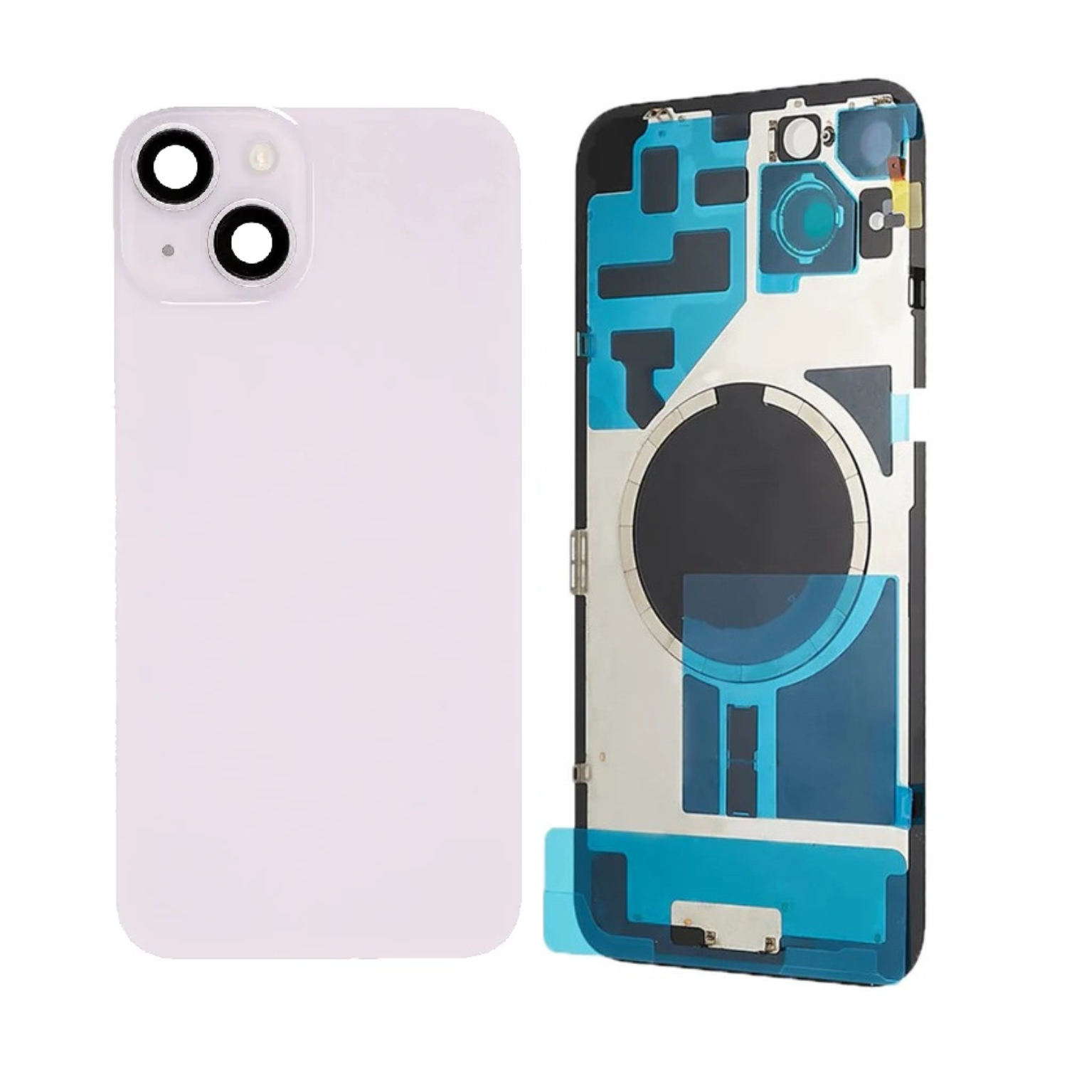 Vitre Arrière iPhone 14 Plus Mauve Assemblée avec Logo.