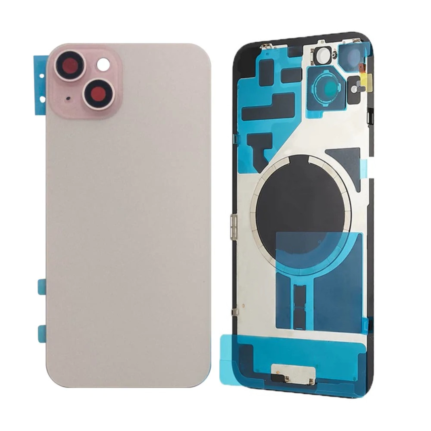 Vitre Arrière iPhone 15 Plus Rose Assemblée avec Logo