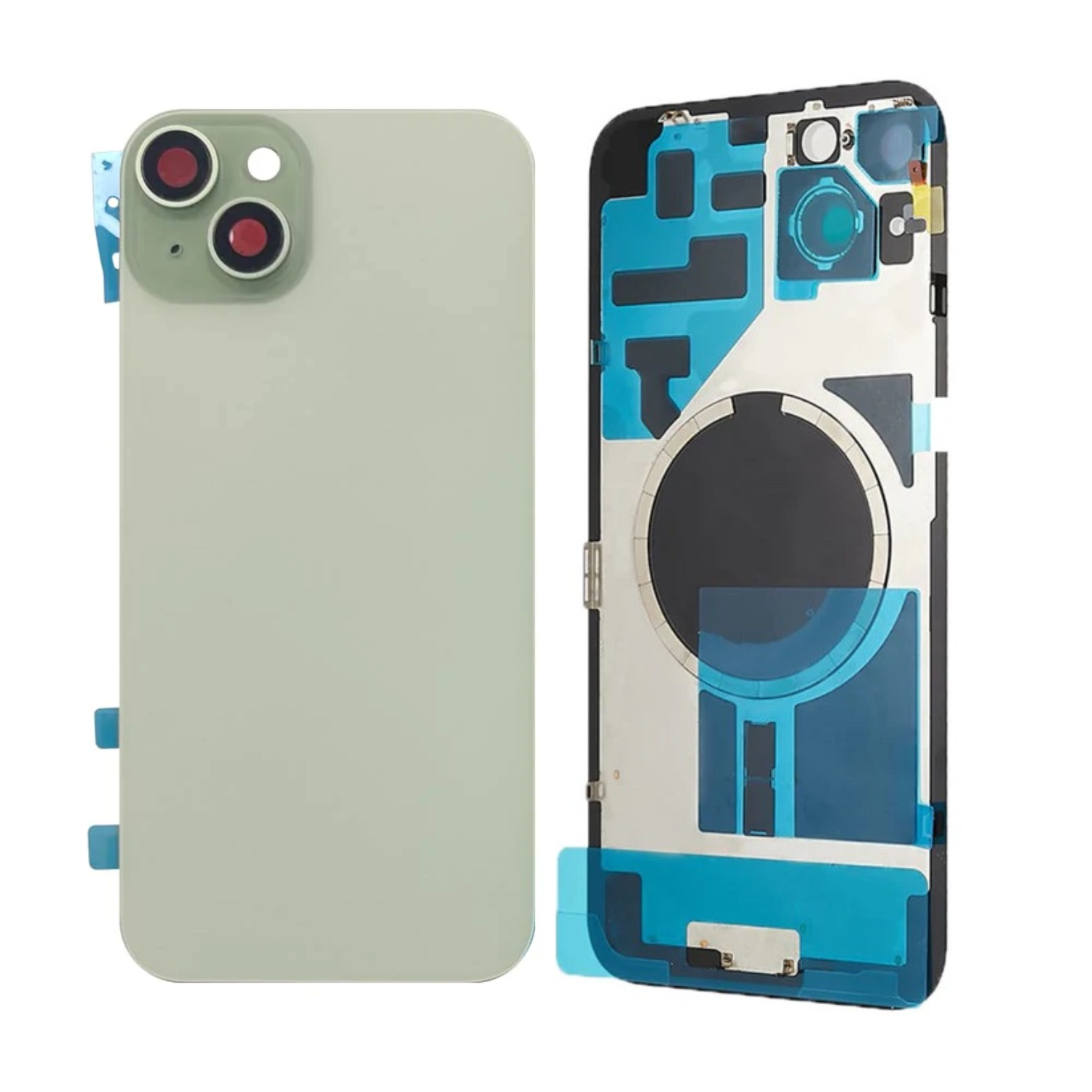 Vitre Arrière iPhone 15 Plus Vert Assemblée avec Logo