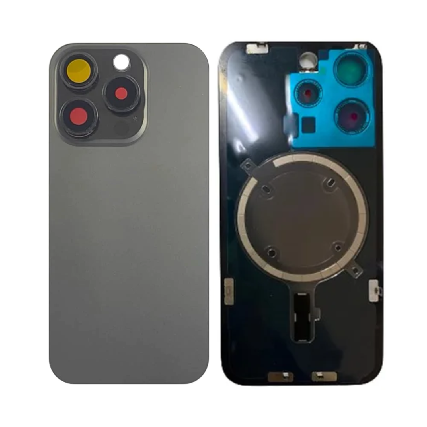 Vitre Arrière iPhone 15 Pro Titane Noir Assemblée avec Logo