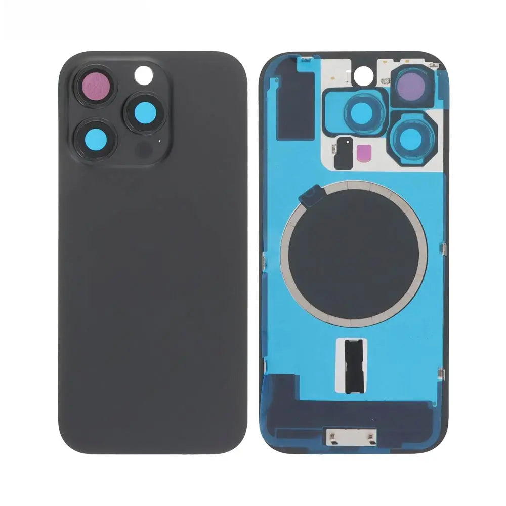 Vitre Arrière iPhone 16 Pro Titane Noir Assemblée avec Logo.